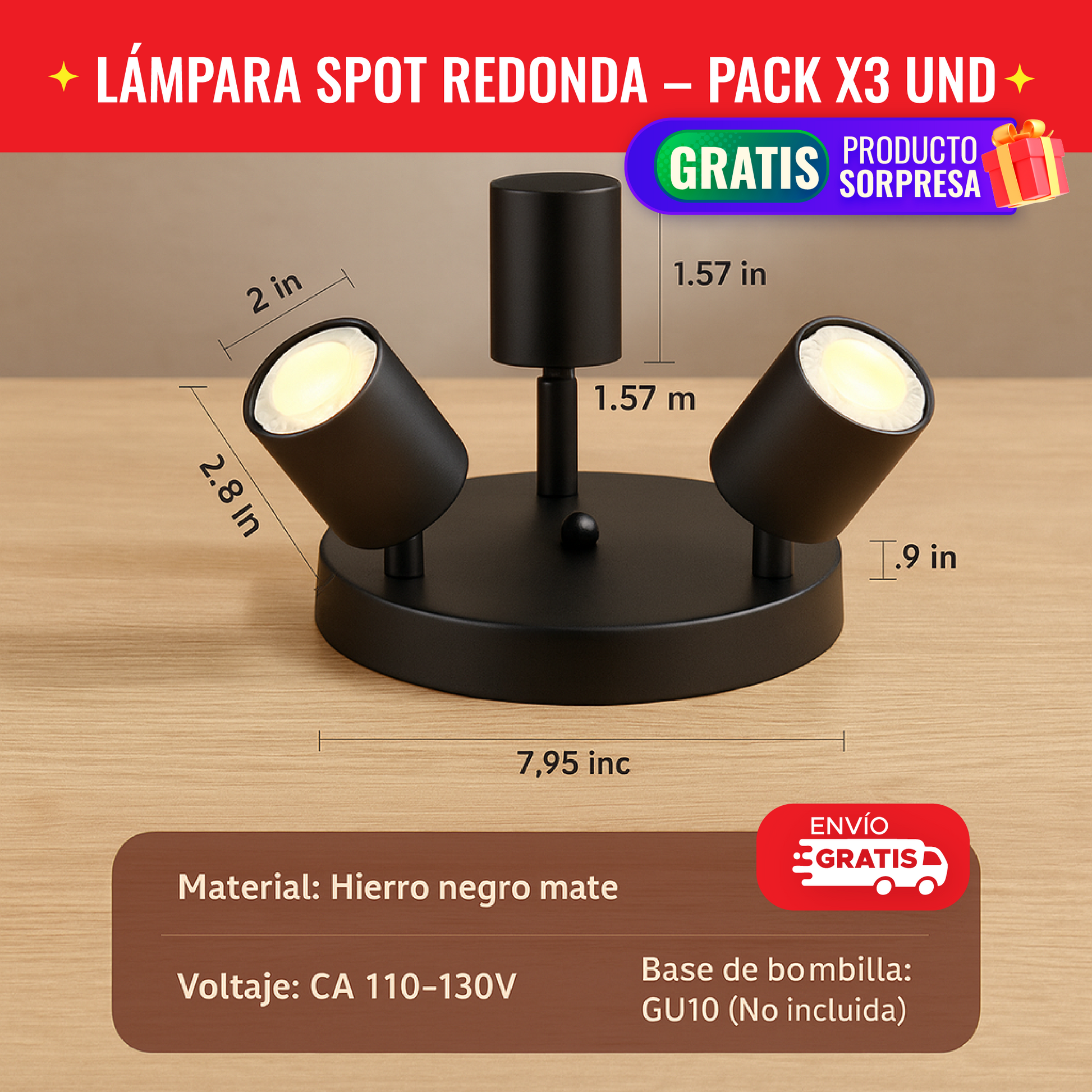 👉 Recibe 3 lámparas modernas ajustables, con garantía y envío gratis, pagas al recibir y además un REGALO SORPRESA 🎁.